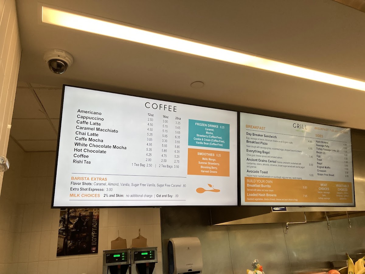 Fulton Street Cafe offers a diverse and delicious menu that caters to a variety of tastes. For breakfast, guests can enjoy the hearty Day Breaker Sandwich or the savory Breakfast Pizza, both great options to start the day. If you’re in the mood for something lighter, the Everything Bagel or the fresh Avocado Toast are perfect choices. For a filling and satisfying meal, try the Breakfast Burrito, packed with flavor. The sides menu includes classic choices like Hash Browns, Sausage Patty, and Turkey Sausage Links. You can also opt for the Bacon or a One Egg Fried or Scrambled. In addition, the cafe serves up a variety of specialty pizzas like the BBQ Chicken, Thai Chicken, and Buffalo Chicken for those looking for a more adventurous flavor. Classic pizzas such as Cheese, Pepperoni, and Italian Sausage are available for traditional pizza lovers. For those who appreciate good coffee, Fulton Street Cafe offers a selection of specialty drinks including Espresso, Americano, Latte, and Mocha, making it a great spot for coffee enthusiasts. They also offer refreshing non-coffee beverages like Mello Mango and Summer Strawberry, as well as a healthy option like Ancient Grains Cereal. With such an extensive menu, Fulton Street Cafe provides something for everyone, whether you're craving a hearty breakfast or a flavorful pizza.